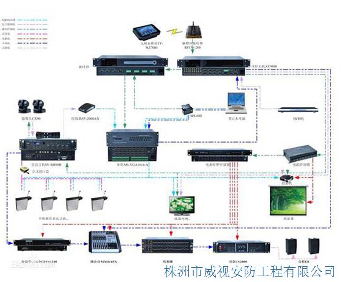 基本的會議系統(tǒng),由麥克風(fēng)、功放、音響、桌面顯示設(shè)備(例如桌面智能終端、液晶顯示器),這幾樣設(shè)備的組合應(yīng)用也可以說是一個會議系統(tǒng)了,它們起到了傳聲,顯示,擴(kuò)聲的作用,達(dá)到能看、能聽、能說話。